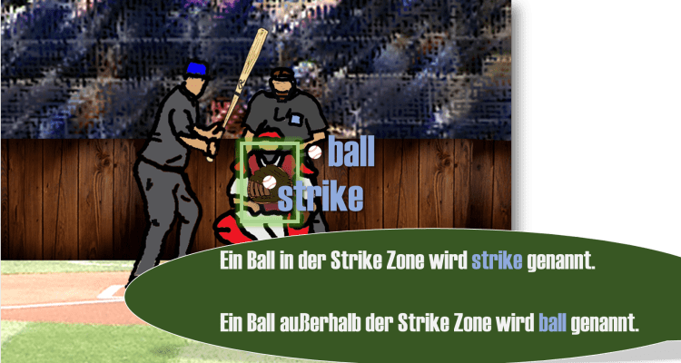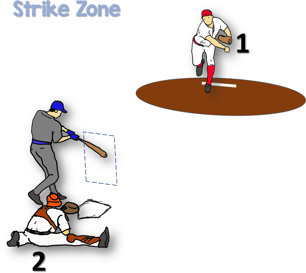 Das begehrteste Out ist sicher das Strike Out. Der Pitcher einer Mannschaft erzielt ein Strike Out, wenn der Batter dreimal nach dem Ball schwingt, ohne diesen zu treffen. Allerdings muss der Batter nicht nach jedem Ball schlagen, sondern nur nach Bällen, die durch die Strike Zone (Bild 1) geworfen wurden. Der Pitcher kann den Ball so schnell und hart auf einer geraden Flugbahn werfen, dass der Batter keine Zeit hat den Ball zu treffen (Fastball). Oder er versucht den Batter zu Fehlschlägen zu verleiten, indem er die Bälle so wirft, dass sie zuerst durch die Strike Zone zu fliegen scheinen, im letzten Moment jedoch nach unten sinken (Curveball) oder nach links (oder rechts) abdrehen (Slider). Schwingt der Batter nach diesen Bällen und trifft er nicht, ist es ein Strike. Nach drei Strikes ist der Batter Out – ein Strike Out.