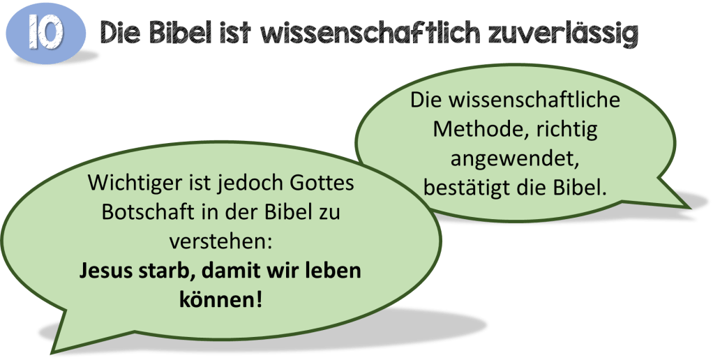 „Ja, aber die Bibel ist doch keine wissenschaftliche Abhandlung!“ – und das ist auch gut so, denn sonst müsste Gott die Bibel ständig korrigieren. Und doch bestätigt die wissenschaftliche Methode, richtig angewendet, immer wieder die Berichte der Bibel.