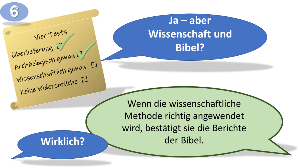 21/04/2022 Christen vertrauen dem Wort Gottes, der Bibel. Welche Argumente gibt es für die Vertrauenswürdigkeit der Bibel? Kann man tatsächlich testen, dass in der Bibel die Wahrheit steht? Wer es genauer wissen möchte, kann in unserer Reihe „Der Bibel vertrauen“ die ersten sechs Teile studieren. Teil Sechs beschäftigt sich ausführlicher mit der wissenschaftlichen Genauigkeit der Bibel.