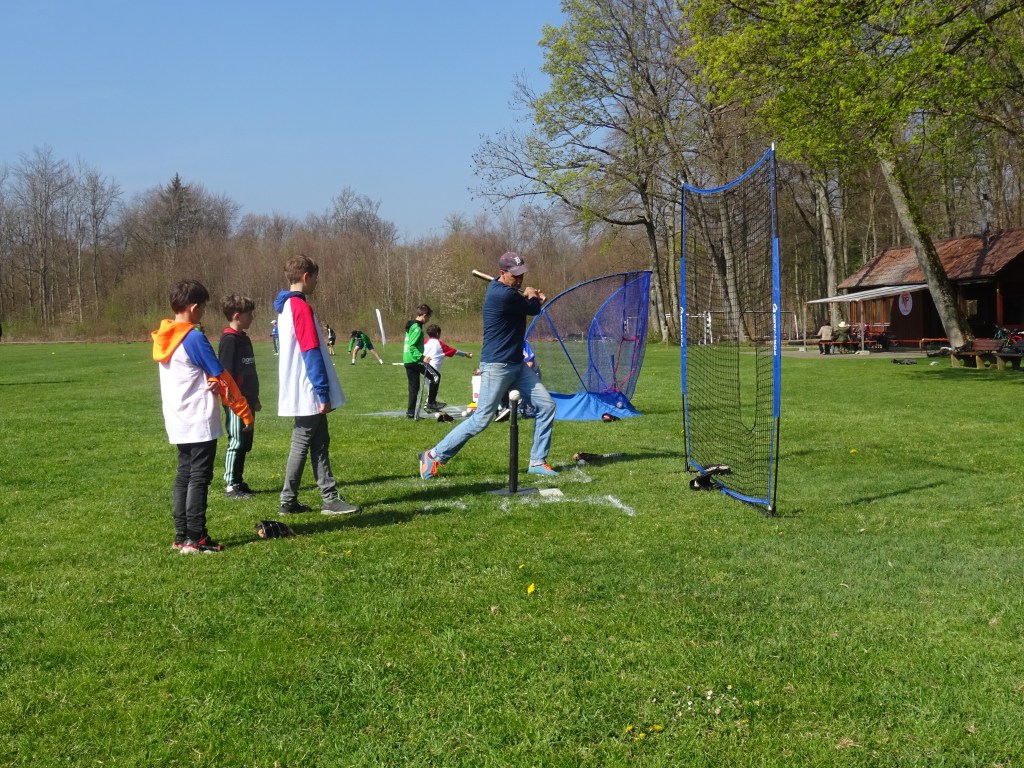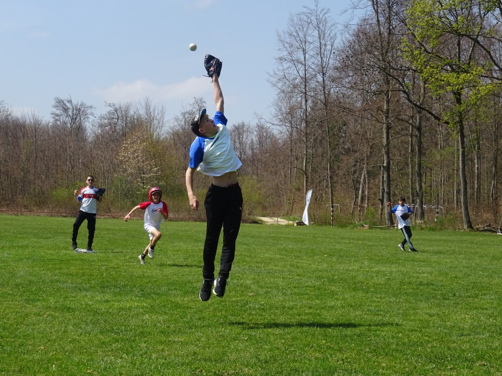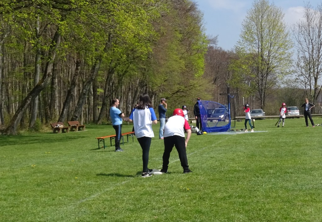 Nach einer Mittagspause mit Hot Dogs und Subs (belegten Brötchen) spielten die Jugendlichen in drei Mannschaften ein kleines Turnier, bei dem die Spieler mit viel Engagement um jedes Out und jeden Run kämpften.