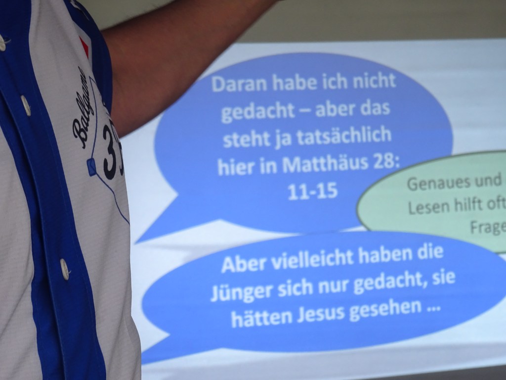 27 Jugendliche trainierten am Donnerstag, dem Opening Day, und am Freitag die Grundlagen des Baseballs, lernten gute Argumente für die Vertrauenswürdigkeit der Bibel kennen und beschäftigten sich mit den Auferstehungsberichten über Jesus und welche Konsequenzen dies für ihr Leben hat.