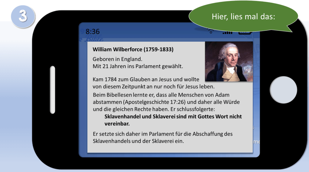 Gottes Wort hat W. Wilberforce, John Newton und Harriet Beecher Stowe bewegt, sich gegen Unrecht in der Welt einzusetzen. Ihre Überzeugungen erhielten sie aus Gottes Wort und letzten Endes waren sie erfolgreich in ihrem Bemühen, die Sklaverei abzuschaffen. Sie lernten durch Gottes Wort, dass alle Menschen ein Ebenbild Gottes (1 Mose 1:27) sind und deshalb Würde und Respekt verdienen und die gleichen Rechte besitzen. Vielen Menschen heutzutage ist nicht bewusst, dass die Abschaffung der Sklaverei hauptsächlich den Bemühungen von Menschen zu verdanken ist, die Gottes Wort lasen, sein Wort verstanden und in unserer Welt verwirklicht sehen wollten. Wird Gottes Wort in unserer Welt durchgesetzt, ermöglicht es den Menschen dieser Welt ein besseres Leben. Gottes Wort ist nicht neutral, doch seine Wahrheit und Kraft gab und gibt uns Freiheit.