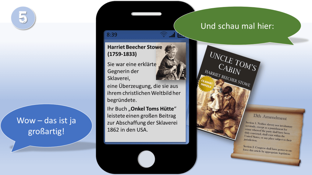 W. Wilberforce und John Newton waren nicht die einzigen Christen, die sich bei der Abschaffung der Sklaverei auf Gottes Wort beriefen. Auch Harriet Beecher Stowe nahm Gottes Wort als Anlass um gegen die Sklaverei in den Südstaaten der USA zu schreiben. Ihr bedeutendstes Buch „Onkel Toms Hütte“ (1852), schildert die Gräuel der Sklaverei und wie der Glaube an Jesus in schweren Zeiten trägt und Vergebung ermöglicht.[ix] Onkel Toms Hütte leistete einen wichtigen Beitrag zur Abschaffung der Sklaverei 1862, drei Jahre vor dem Ende des US-Bürgerkrieges.