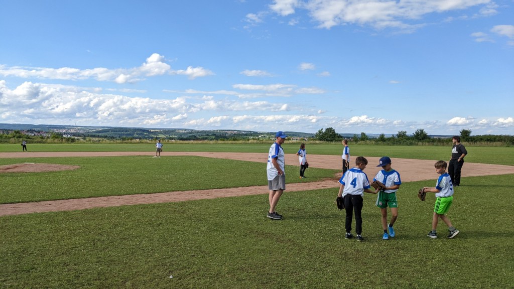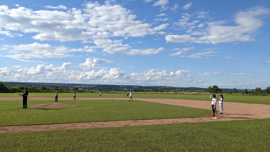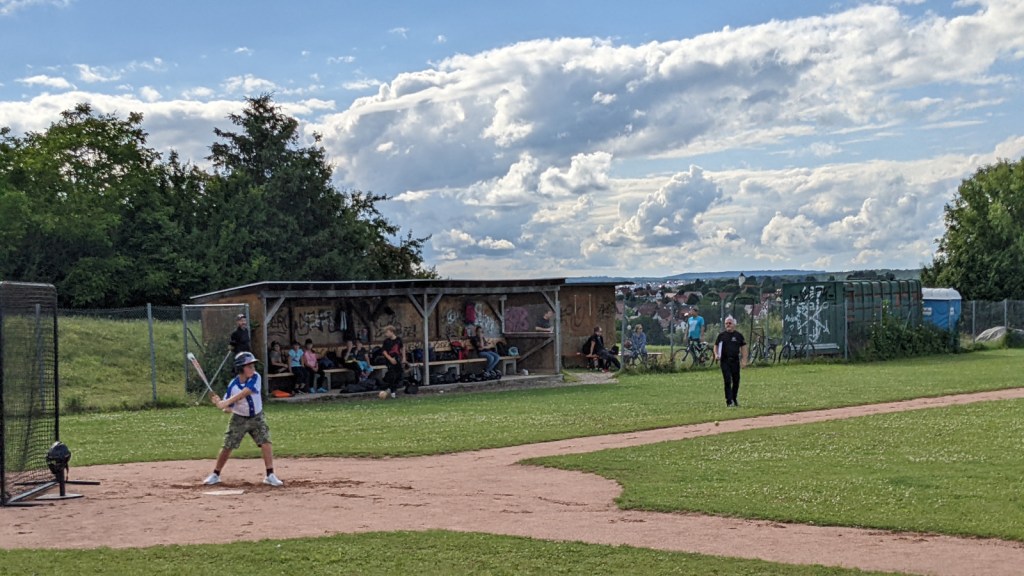01. Juli 2022 Der 3B lachte die Sonne – den ganzen Morgen und frühen Nachmittag sah es aus, als ob unser Spiel gegen die Woodpeckers wieder verschoben werden musste – doch rechtzeitig vor der Abfahrt schien uns die Sonne und wir fuhren bei Sonnenschein und frühlingshaften Temperaturen nach Reutlingen auf die Römerschanze.