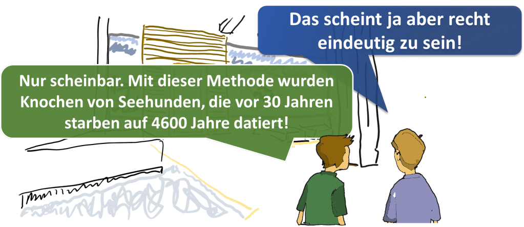 „Diese Knochen wurden mit der C14 (Radiocarbon-Methode) auf 42 000 Jahre datiert.“ Das hört man manchmal im Unterricht und liest es öfters bei populärwissenschaftlichen Artikeln und bringt Christen oft ins Straucheln. Dabei ist das gar nicht nötig. Die C14 Methode ist tatsächlich ein weiteres Beispiel für die Unzuverlässigkeit von radiometrischen Datierungsmethoden. Dafür gibt es viele Beispiele: Ein Schulterblatt von Neandertalern[ii] in der belgischen Höhle Spy wurde zuerst auf 24 000 Jahre datiert, dann auf 32 000 Jahre[iii]. Ein weiteres Beispiel ist das Vollosovitch Mammut, das auf 29500 Jahre und dann auf 44000 Jahre datiert wurde[iv]. Dazu gibt es weitere Messungen an Knochen von frisch erlegten Seehunden die auf 1300 Jahre datiert wurden und andere Seehunde auf 4600 Jahre obwohl diese Seehunde nachweislich erst vor 30 Jahren starben[v]. Es ist tatsächlich so, dass die C14 Methode eigentlich zeigt, dass die Erde sehr jung ist.
