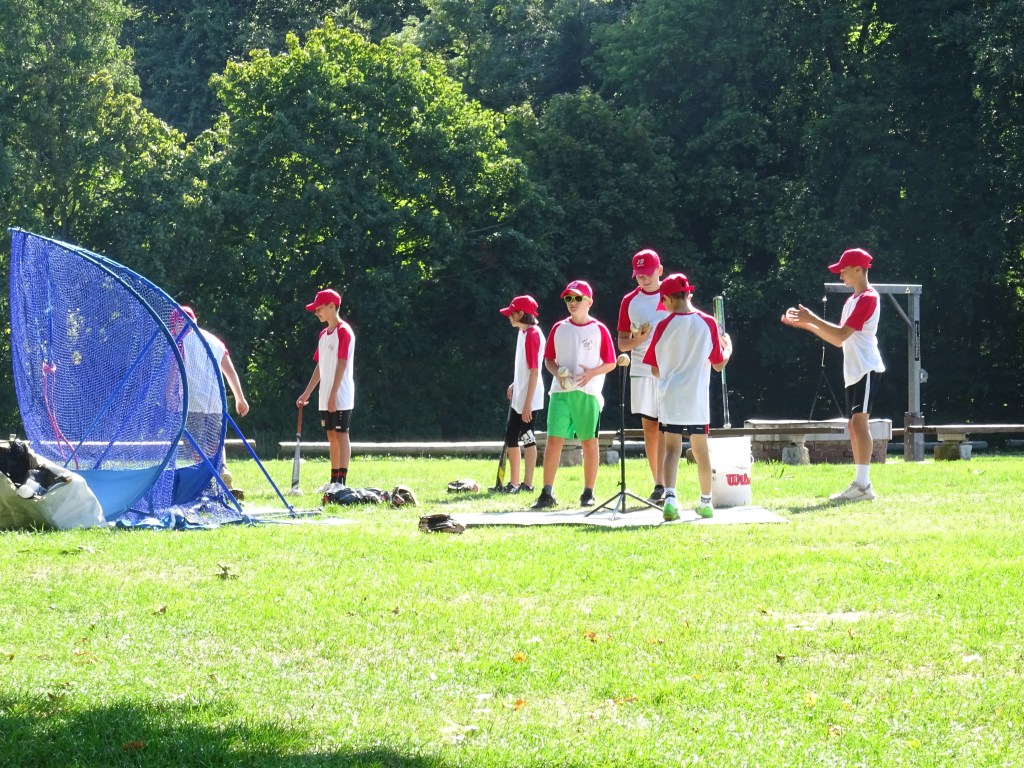 Andrew Benintendis Aussage „Egal wie groß du bist, jeder kann im Baseball Erfolg haben“ – bestätigte sich auf dem 3B SummerCamp. Vom 07. – 09. September trainierten und spielten 27 Teilnehmer zwischen 7 und 15 Jahren auf dem Etzenberg Baseball. Nicht weniger als sieben der Teilnehmer kamen von außerhalb Hülbens und wurden nahtlos in die Mannschaft aufgenommen – besser gesagt in die Mannschaften: Die Red Birds, Blue Knights und White Lions. Mittelpunkt der 3B Camps sind die BibleTimes vor dem Mittagessen, bei denen es dieses Jahr darum ging, dass wir Gott vertrauen können, und dass er uns bis heute persönlich begegnet; auch hier auf der Schwäbischen Alb, wie Coach John Pearson eindrücklich berichtete.