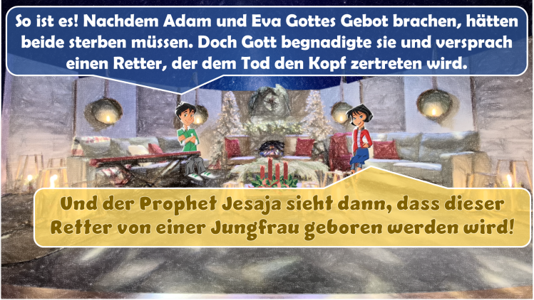 „Wie feiert Ihr Heilig Abend?“ – „Nach dem Gottesdienst gibt es bei uns Würstchen mit Kartoffelsalat und nach dem Essen liest mein Vater die Weihnachtsgeschichte vor,“ lautet die Antwort meines Freundes. Die meisten denken bei der „Weihnachtsgeschichte“ an den Bericht im Lukasevangelium: „Es begab sich aber zu der Zeit, dass ein Gebot von dem Kaiser Augustus ausging, dass alle Welt geschätzt würde.“ Und während dies einer der Berichte über die erste Weihnacht ist, gehen die Gründe, warum wir Weihnachten feiern doch ganz an den Anfang der Weltgeschichte zurück, sehr weit, bis zum ersten Buch Mose. Den ersten Verweis auf die Geburt von Jesus finden wir in 1 Mose 3:15: