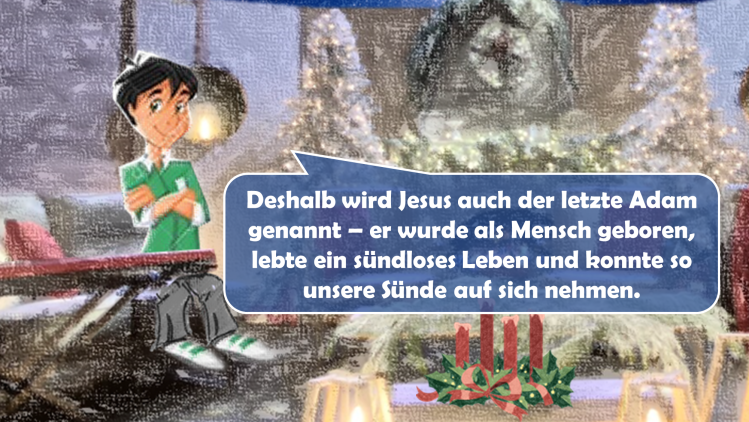 Jesus, Gott, kam in diese Welt wie jeder Mensch in die Welt kommt – er wurde geboren. Doch im Gegensatz zu uns Menschen lebte Jesus ein perfektes Leben. Denn nur wenn er ohne Sünde blieb, konnte er die Sünde aller Menschen auf sich nehmen. Deshalb wurde Jesus geboren und deshalb musste er sterben. Aus diesem Grund wird Jesus auch in 1 Korinther 15:45 als „der letzte Adam“ bezeichnet.