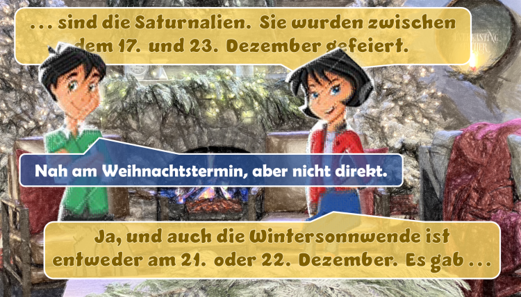 Schauen wir uns zuerst die Hypothese an, dass Weihnachten eigentlich ein heidnisches Fest[ii] ist. Zur Auswahl stehen drei Feste. Eines dieser Feste sind die Saturnalien, eine Verehrung des römischen Gottes Saturn. Dieses Fest wurde zwischen dem 17. und 23. Dezember gefeiert und liegt zwar in der Nähe des Weihnachtsfestes, endete jedoch schon zwei Tage vor dem heutigen Weihnachtsdatum.