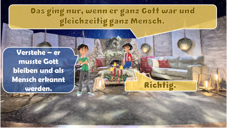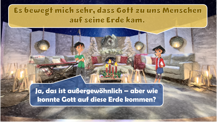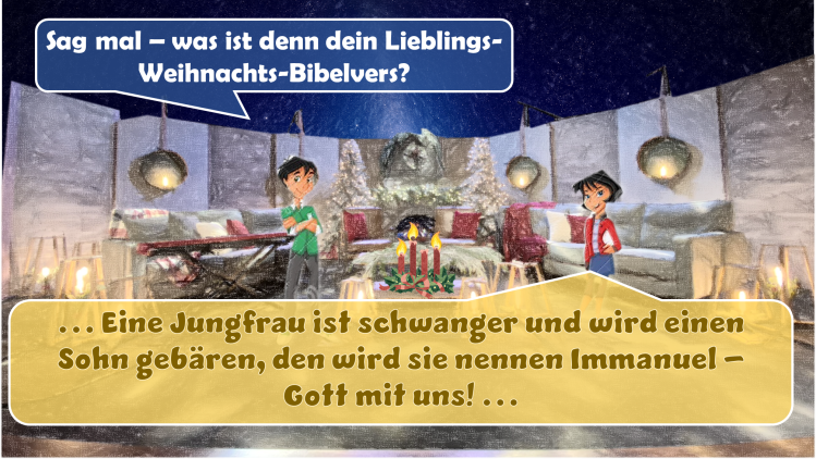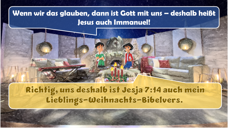 „Darum wird euch der Herr selbst ein Zeichen geben: Siehe, eine Jungfrau ist schwanger und wird einen Sohn gebären, den wird sie nennen Immanuel (Gott mit uns),“ – dies ist einer der bekanntesten Bibelverse in der Weihnachtszeit. Es ist das Versprechen Gottes, dass er selbst, der Schöpfer, mit uns sein wird. Doch wie kann das gehen – wie kann der lebendige, heilige Gott unter seinen Geschöpfen leben? Das geht nur, indem Gott Mensch wurde.