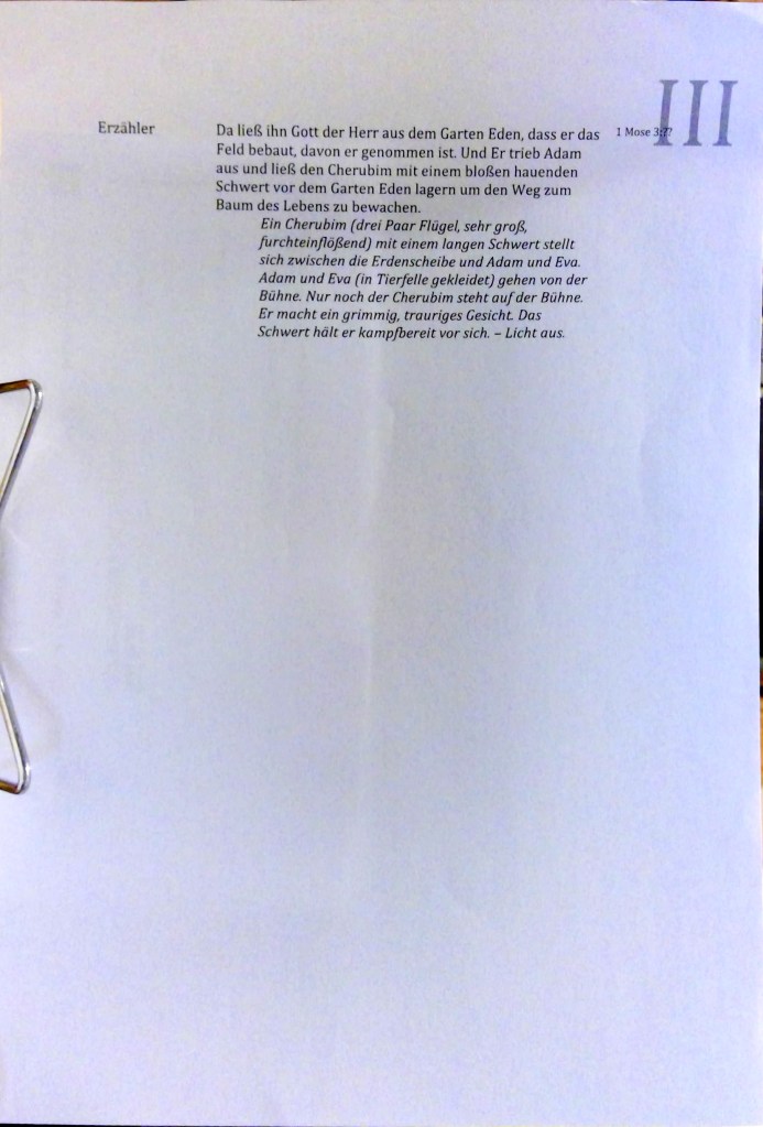 22 Und Gott der HERR sprach: Siehe, der Mensch ist geworden wie unsereiner und weiß, was gut und böse ist. Nun aber, dass er nur nicht ausstrecke seine Hand und nehme auch von dem Baum des Lebens und esse und lebe ewiglich! 23 Da wies ihn Gott der HERR aus dem Garten Eden, dass er die Erde bebaute, von der er genommen war. 24 Und er trieb den Menschen hinaus und ließ lagern vor dem Garten Eden die Cherubim mit dem flammenden, blitzenden Schwert, zu bewachen den Weg zu dem Baum des Lebens.