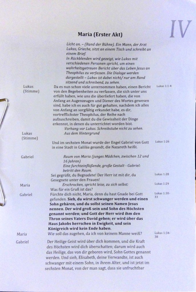 26 Und im sechsten Monat wurde der Engel Gabriel von Gott gesandt in eine Stadt in Galiläa, die heißt Nazareth, 27 zu einer Jungfrau, die vertraut[1] war einem Mann mit Namen Josef vom Hause David; und die Jungfrau hieß Maria. 28 Und der Engel kam zu ihr hinein und sprach: Sei gegrüßt, du Begnadete! Der Herr ist mit dir! 29 Sie aber erschrak über die Rede und dachte: Welch ein Gruß ist das? 30 Und der Engel sprach zu ihr: Fürchte dich nicht, Maria! Du hast Gnade bei Gott gefunden. 31 Siehe, du wirst schwanger werden und einen Sohn gebären, dem sollst du den Namen Jesus geben. 32 Der wird groß sein und Sohn des Höchsten genannt werden; und Gott der Herr wird ihm den Thron seines Vaters David geben, 33 und er wird König sein über das Haus Jakob in Ewigkeit, und sein Reich wird kein Ende haben. 34 Da sprach Maria zu dem Engel: Wie soll das zugehen, da ich doch von keinem Manne weiß? 35 Der Engel antwortete und sprach zu ihr: Der Heilige Geist wird über dich kommen, und die Kraft des Höchsten wird dich überschatten; darum wird auch das Heilige, das geboren wird, Gottes Sohn genannt werden. 36 Und siehe, Elisabeth, deine Verwandte, ist auch schwanger mit einem Sohn, in ihrem Alter, und ist jetzt im sechsten Monat, sie, von der man sagt, dass sie unfruchtbar sei. 37 Denn bei Gott ist kein Ding unmöglich. 38 Maria aber sprach: Siehe, ich bin des Herrn Magd; mir geschehe, wie du gesagt hast. Und der Engel schied von ihr.