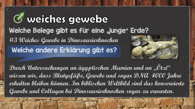 Zusammenfassend kann man sagen, dass die Konservierung von Blutgefäßen, Zellen und komplexen Molekülen in Dinosaurierknochen in einer nur wenige tausend Jahre alten Erde plausibel und erwartbar ist. In einem Szenario, bei dem die Dinosaurier vor Millionen von Jahren ausstarben ist es jedoch höchst unwahrscheinlich.