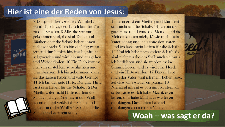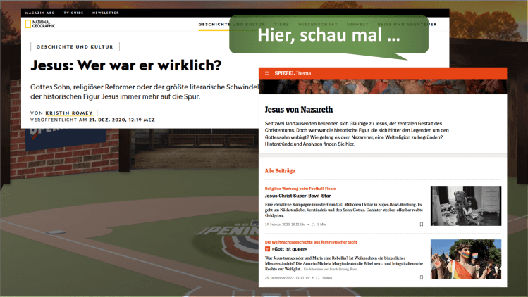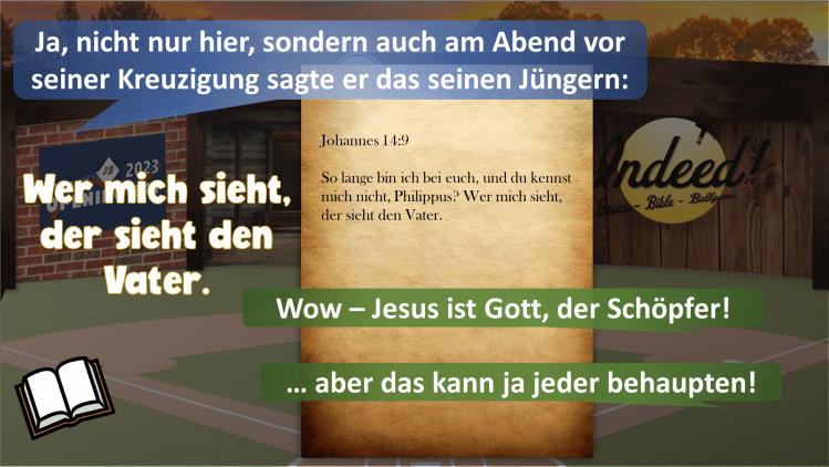 „Doch dann geschieht das Schockierende. Unter diesen Juden taucht plötzlich ein Mensch auf, der redet, als wäre er Gott. Er behauptet, Sünden vergeben zu können. Er sagt, er sei von Ewigkeit an gewesen. Er sagt, er werde am Ende der Zeiten kommen, um die Welt zu richten.