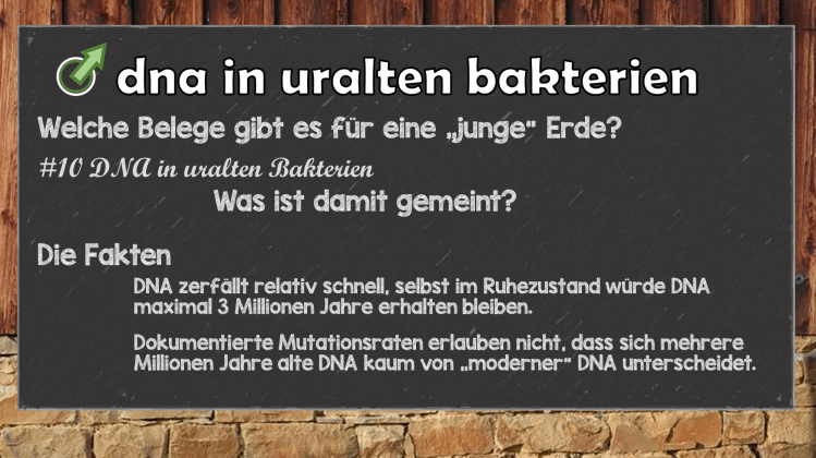Eine weitere Überraschung war, dass die DNA des Lazarus Bakteriums nach den angenommenen 250 Millionen Jahren noch intakt war. Sogar unter optimalen Bedingungen zerfällt DNA sehr schnell. Die Wissenschaftler gestehen ein, dass selbst die DNA in bakteriellen Sporen (ein „Ruhezustand“) nicht länger als 3 Millionen Jahre stabil bleiben kann. Damit ergibt sich für die Wissenschaftler eine nicht lösbare Zwickmühle.