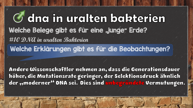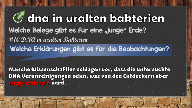 Vertraut man jedoch den Berichten der Bibel ist die Entdeckung des Lazarus Bakteriums keine Überraschung. Die Salzlager in dem das Bakterium enthalten war, wurden sehr wahrscheinlich während der Flut zu Noahs Zeiten abgelagert. Wenn das Bakterium nur etwa 4500 Jahre alt ist (die Zeit seit der weltumspannenden Flut zur Zeit Noahs), dann ist es sehr plausibel, dass dessen DNA noch intakt ist und „moderner“ DNA sehr ähnlich ist.