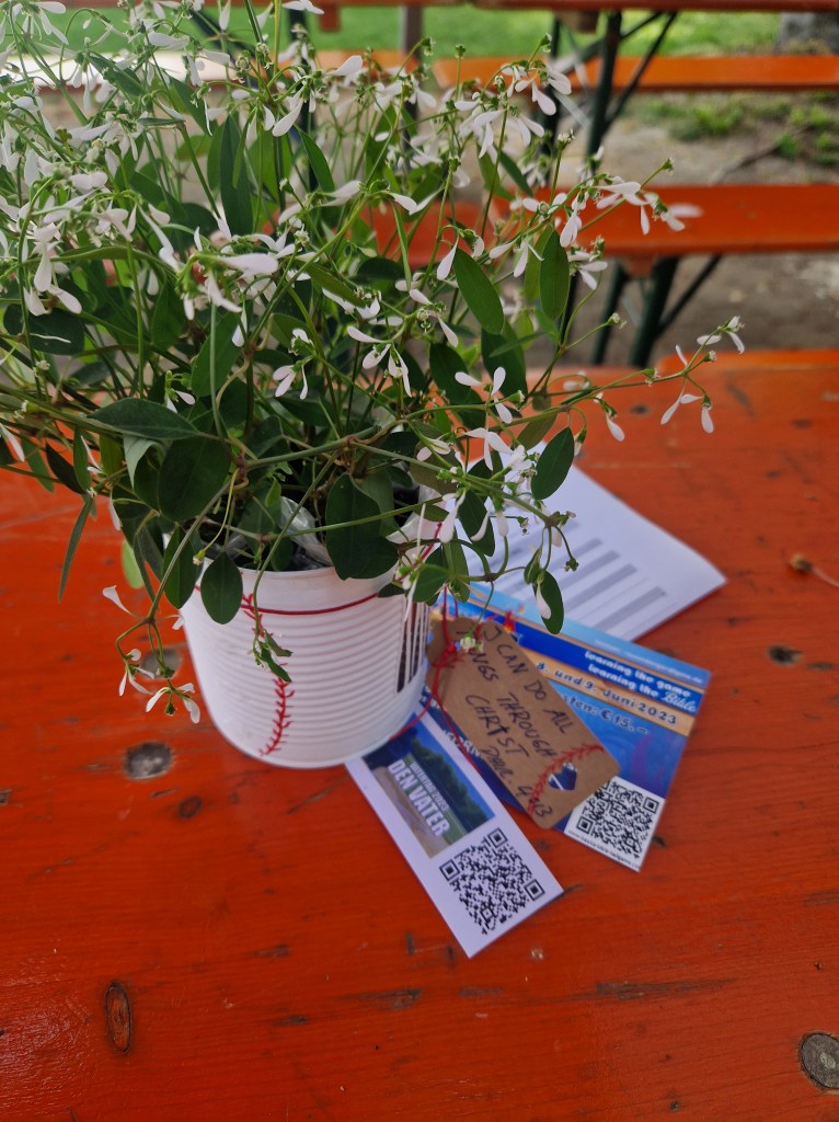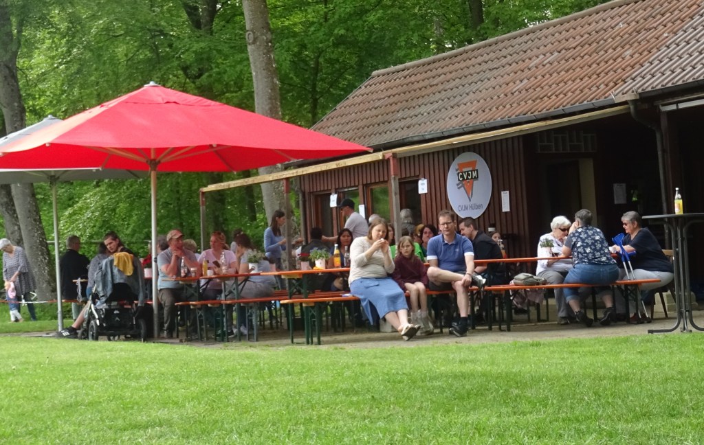 „Die Wettervorhersage sieht ja gut aus!“, „Ja, meine App sagt 24°C und Sonnenschein.“ – Die App lag etwas daneben und doch schenkte uns unser HERR einen perfekten Tag für die Eröffnung des CVJM Waldcafés auf dem Etzenberg mit dem Wort unter dem Kreuz. Zum ersten Mal war dabei 3B der Gastgeber an diesem Nachmittag und verantwortlich für Kaffee, Kuchen und die Ausgabe derselben.