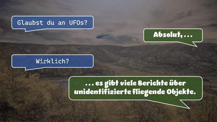 „Glauben Sie an UFOs?“ – Nicht nur einmal habe ich diese Frage von Jugendlichen gestellt bekommen. Meistens, nachdem diese auf ein Video in den Sozialen Medien gestoßen sind oder wie kürzlich, als das Pentagon Dokumente zu UFO-Sichtungen dem Kongress in Washington übergab[i]. Meist sind die Jugendlichen überrascht, wenn ich antworte, dass ich an UFOs glaube – was kurz darauf der Enttäuschung weicht, wenn ich diesen „Glauben an UFOs“ erkläre.