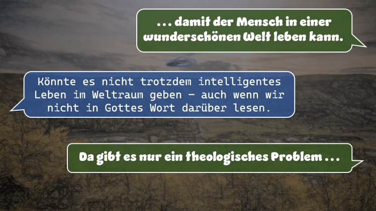 Dazu gibt es eine gewichtige theologische Begründung, die intelligentes Leben im Weltraum ausschließt. In Römer 8:22 lesen wir, „dass die ganze Schöpfung bis zu diesem Augenblick seufzt und in Wehen liegt.“ Als Adam sündigte hatte dies nicht nur Auswirkungen auf die Erde, sondern auf das ganze Universum und eines Tages wird „der Himmel […] zusammengerollt werden wie eine Buchrolle“ (Jesaja 34:4). Alles was wir kennen wird nicht mehr sein und es gibt „einen neuen Himmel und eine neue Erde; denn der erste Himmel und die erste Erde sind vergangen.“