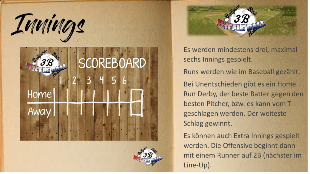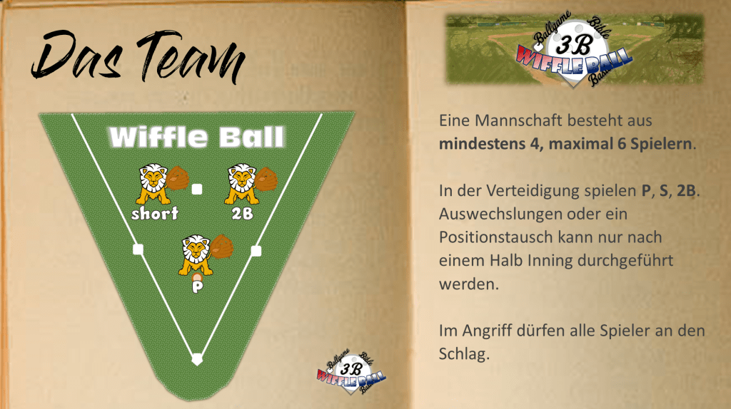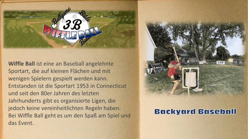 Wer im Sommer nicht genügend Spieler für ein Baseballspiel zusammenbekommt – oder den Platz nicht zur Verfügung hat – kann auf kleinem Platz und mit weniger Spielern Wiffle Ball spielen.