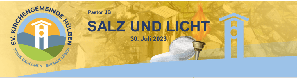 Der Predigttext für den heutigen Sonntag [30. Juli 2023] steht zu Beginn der Bergpredigt bei Matthäus im 5. Kapitel. Ich lese ab Vers 13.