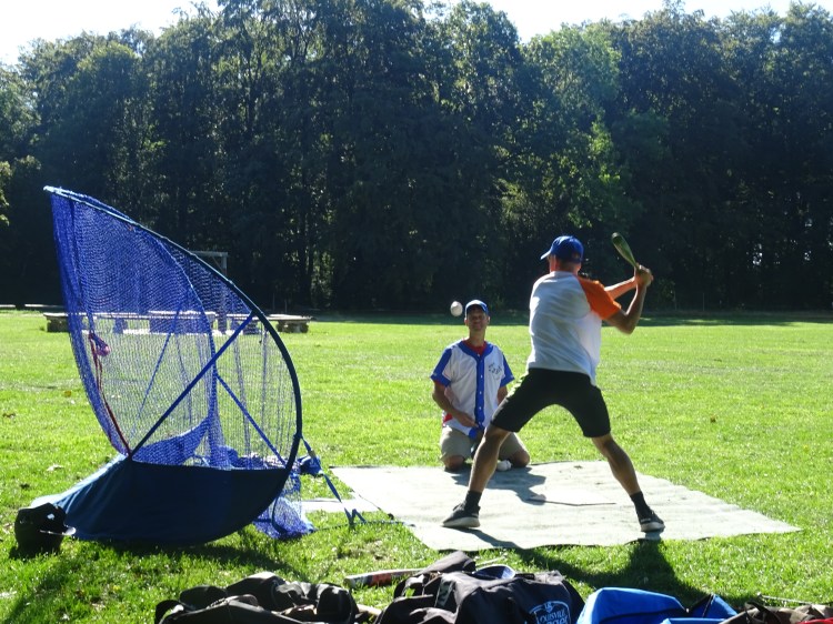 Drei Vormittage hatten die Spieler der drei Camp-Mannschaften der Blue Knights, der Red Birds und der White Lions an ihren Baseballfertigkeiten trainiert um nachmittags in der 3B SUMMER League um Runs und Siege zu spielen. Am ersten Tag erhielten die Coaches von 3B hochkarätige Unterstützung: Simon Gühring, sechsfacher Deutscher Meister mit den Heidenheim Heideköpfe und Kapitän der Baseballnationalmannschaft kam mit seinem jüngsten Sohn auf den Etzenberg um mit den Teilnehmern an ihren Schlagkünsten zu feilen.