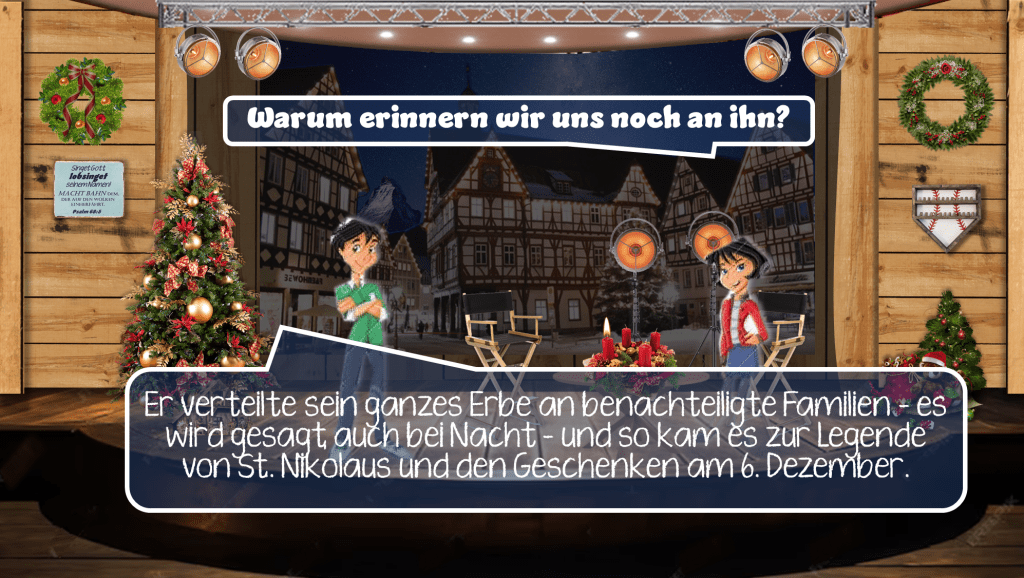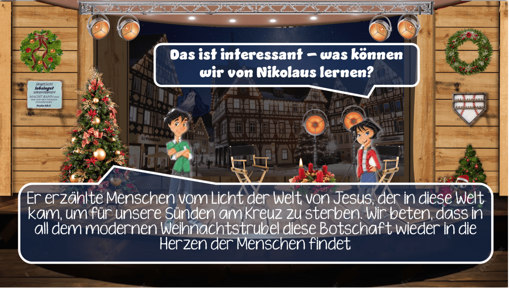 Beten wir, dass es in diesen adventlichen Tagen nicht nur Licht in und um unsere Häuser wird, sondern dass das Licht der Welt, Jesus, in viele Herzen einziehen darf. Dies ist die Botschaft die auch Nikolaus von Myra weiterzählt und verbreitet hat.