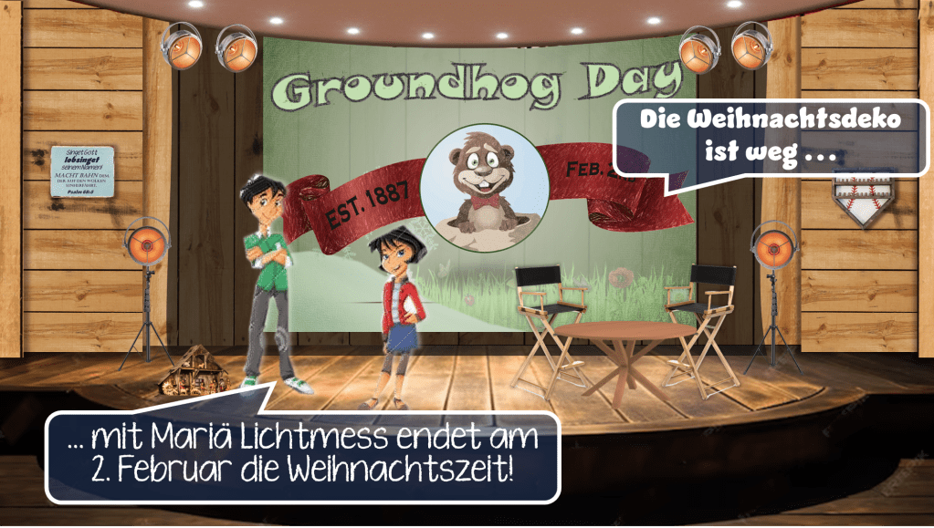 Diese letzte Wetterregel ist auch der Grund für den „Groundhog Day“ in Punxsutawney, Pennsylvania, USA[vii]. Jedes Jahr am 2. Februar wird Punxsutawney Phil, ein Murmeltier, gefragt ob er die Sonne sieht. Ob die Festivalbesucher wissen, welchen Hintergrund es für die Party gibt, darf ruhig angezweifelt werden. Für uns sollte dies eine Aufforderung sein den Menschen zu erklären, dass sie tatsächlich an diesem Tag (und an allen anderen Tagen) Grund zum Feiern haben und so wie Simeon und Hanna Gott loben können, da er Jesus als unseren Heiland auf diese Erde schickte.