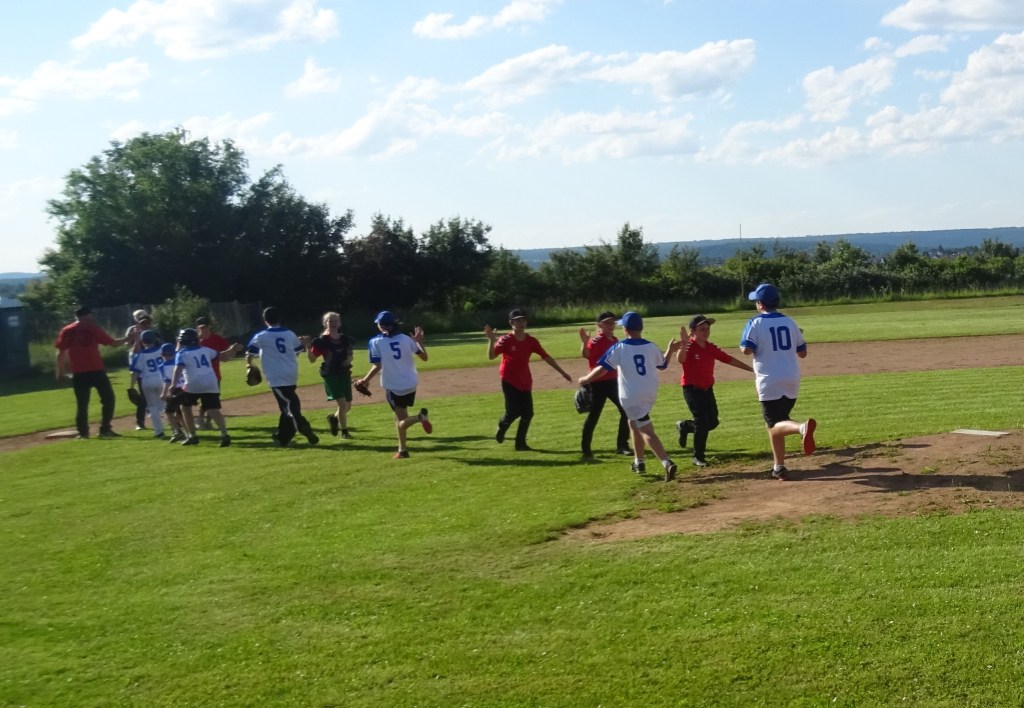 Mit diesen Gedanken in der BibleTime startete die 3B in ihre Begegnung mit den Woodpeckers auf deren eigenem Feld. Das Wetter war perfekt für einen spannenden Baseballnachmittag und beide Mannschaften waren am Schlag und in der Verteidigung erfolgreich. Die 3B gestaltete das Spiel bis zum vorletzten Inning ausgeglichen, bevor sich die Woodpeckers durch jeweils zwei unbeantwortete Runs im vierten und fünften Inning den Sieg erarbeiteten. Die 3B hatte sich die Aufmerksamkeit der Woodpeckers erarbeitet, was sich auch daran zeigte, dass sich deren Coaches in den letzten beiden Innings in ihre jeweiligen Coachingzonen an der ersten und dritten Base begaben.
