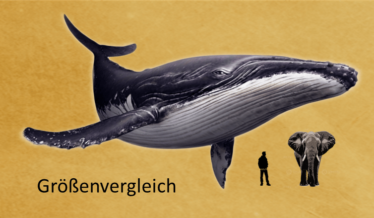 Derjenige, der den siegreichen Vorschlag einbrachte, kannte sich offensichtlich mit Walen aus. Der größte Wal ist gleichzeitig auch das größte Tier der Welt aller Zeiten (die größten Dinosaurier miteingerechnet): Der Blauwal. Dieser gigantische Bartenwal kann bis zu 33 Meter lang werden und bis zu 180 Tonnen wiegen. Im Vergleich dazu ist der Afrikanische Elefant ein Zwerg: Er wiegt „nur“ bis zu acht Tonnen. Von Kopf bis Schwanz waren manche Dinosaurier länger, doch nimmt man den Hauptteil des Körpers zum Vergleich, sind Blauwale deutlich länger.