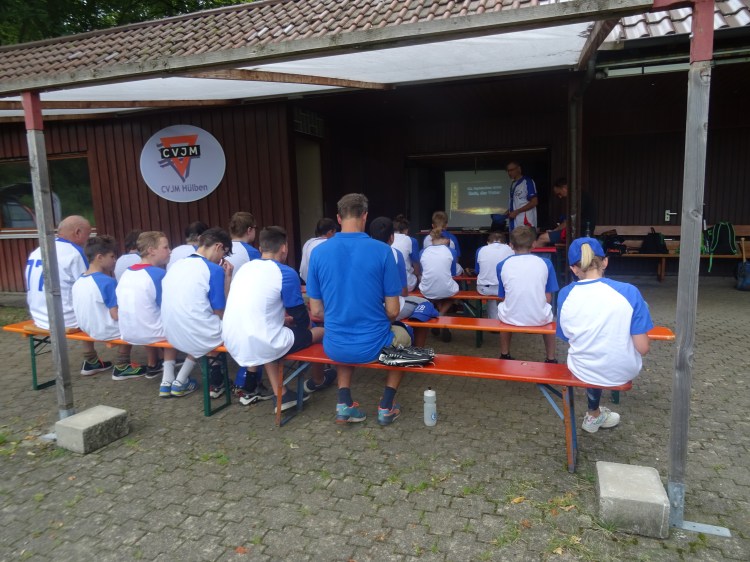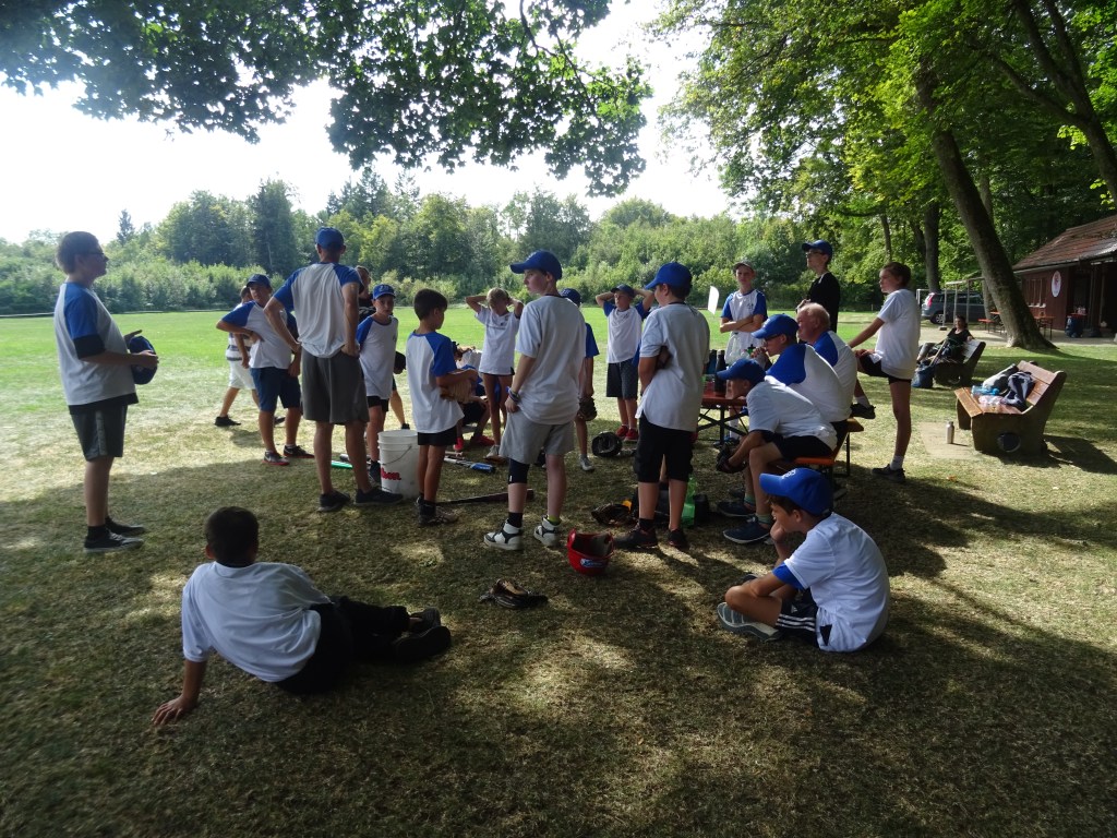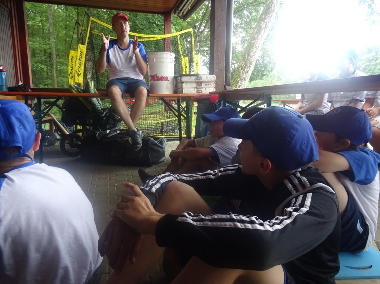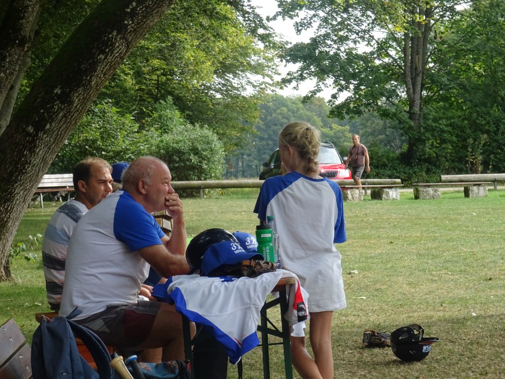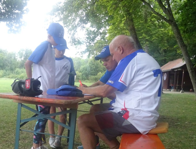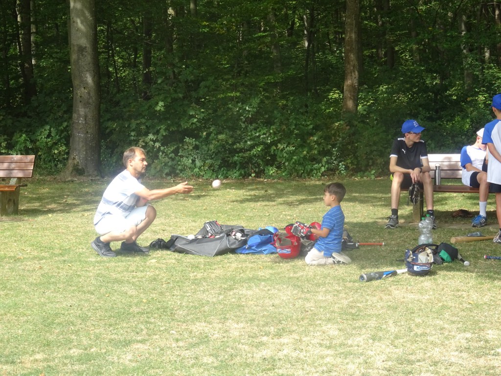 Aufgrund der Wetterlage begann das Spiel am Nachmittag schon früher um möglichst lange spielen zu können – und tatsächlich konnten die Teilnehmer das Gelernte auch umsetzen. Durch Umstellungen in den Teams war das Spiel bis zur Regenunterbrechung auch ausgeglichen – das Spiel wird morgen im unteren Teil des 3. Innings beim Stand von 4:4 fortgeführt.