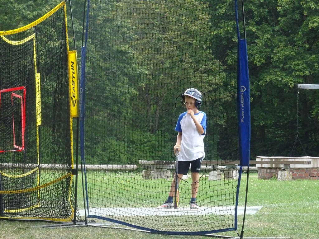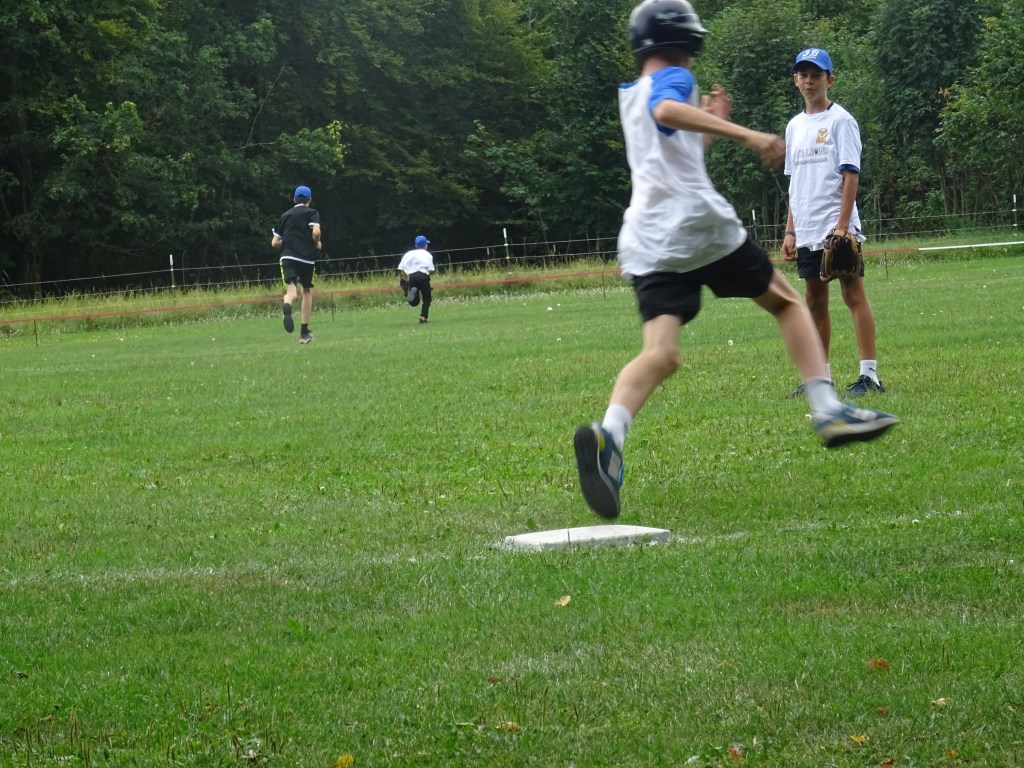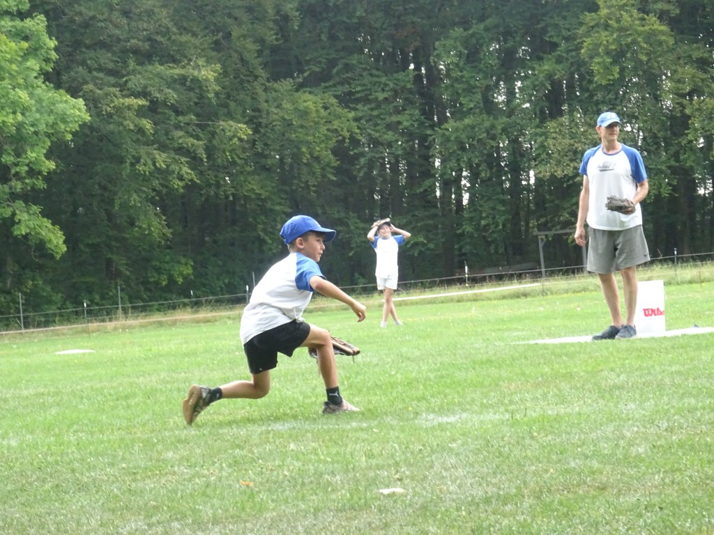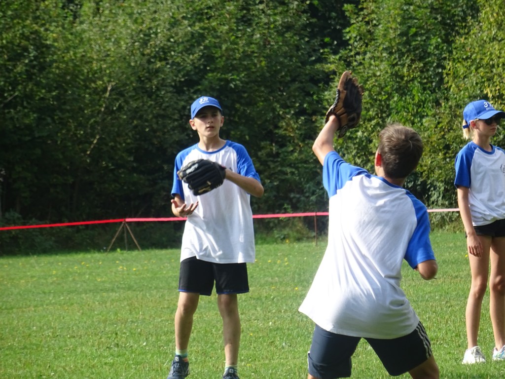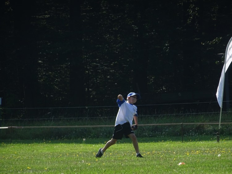 Die zugeführte Energie reichte dann auch jeden Nachmittag für 6 bzw. 7 Innings Baseball, großartige Catches (schwierig geschlagene Bälle aus der Luft gefangen) und Homeruns (Ball so hart geschlagen, dass man direkt wieder nach Hause kommt und einen Run/ Punkt erläuft). Und auch wenn die Blue Knights und die White Lions gegeneinander spielten, ermutigten sich alle Teilnehmer gegenseitig und spendeten Trost, wenn es mal bei einem Spieler nicht zu einem Hit (Ball so geschlagen, dass man im Spiel bleiben darf) reichte.