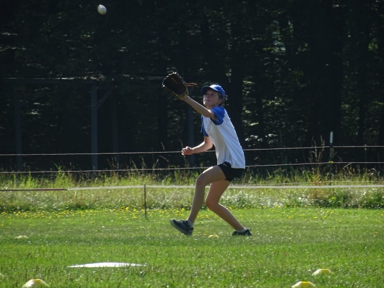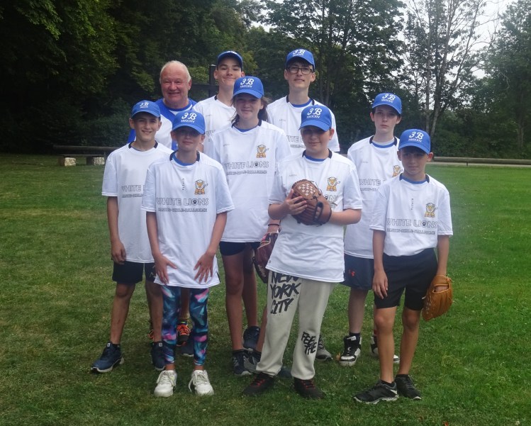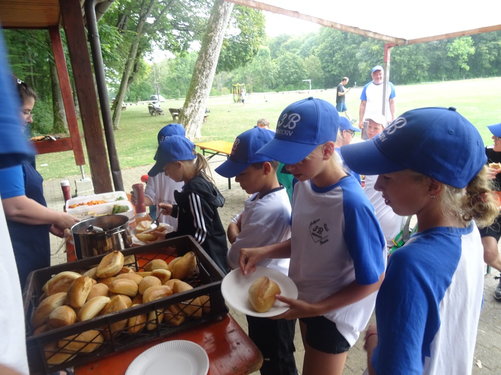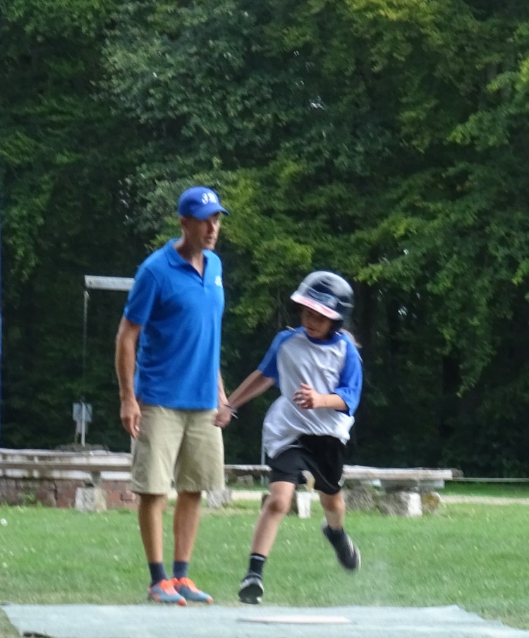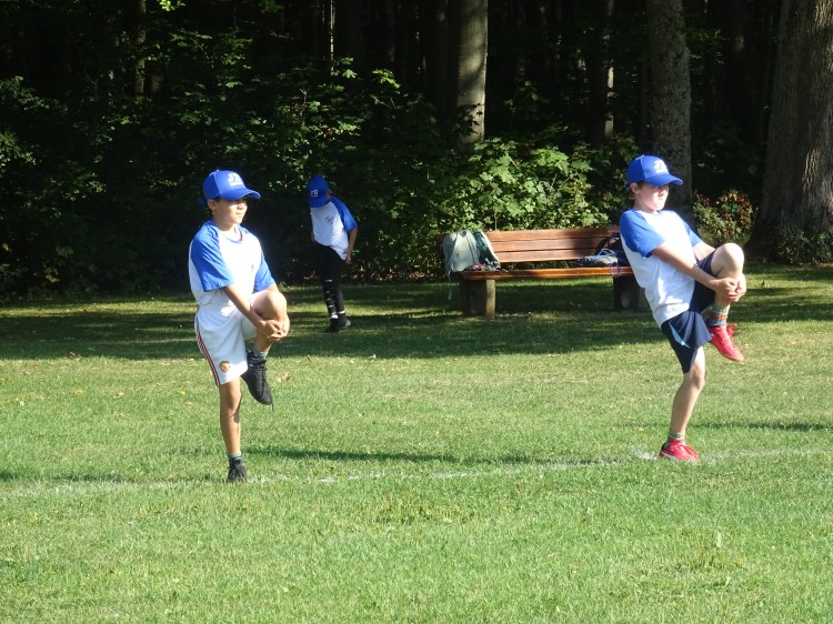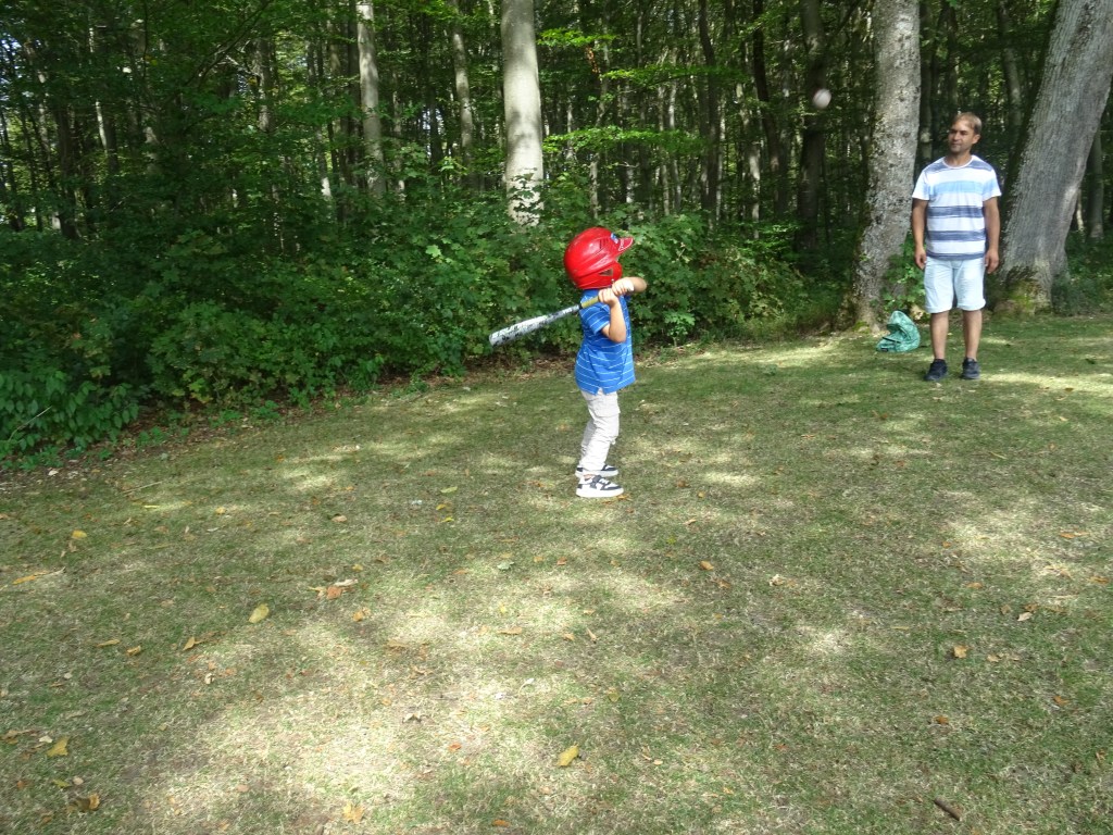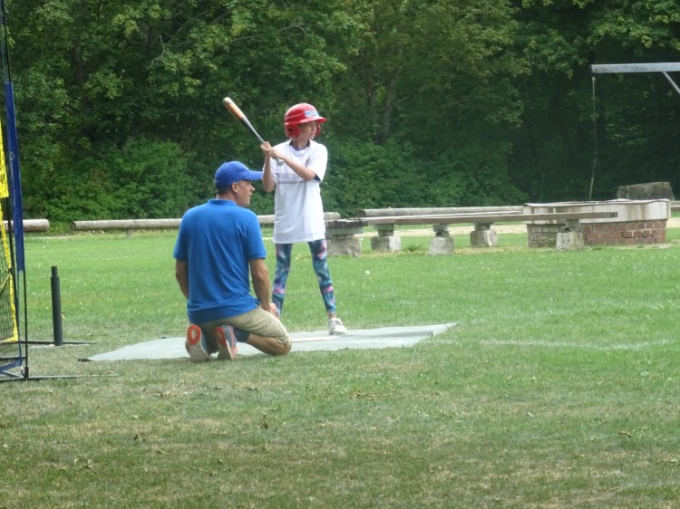 Die zugeführte Energie reichte dann auch jeden Nachmittag für 6 bzw. 7 Innings Baseball, großartige Catches (schwierig geschlagene Bälle aus der Luft gefangen) und Homeruns (Ball so hart geschlagen, dass man direkt wieder nach Hause kommt und einen Run/ Punkt erläuft). Und auch wenn die Blue Knights und die White Lions gegeneinander spielten, ermutigten sich alle Teilnehmer gegenseitig und spendeten Trost, wenn es mal bei einem Spieler nicht zu einem Hit (Ball so geschlagen, dass man im Spiel bleiben darf) reichte.