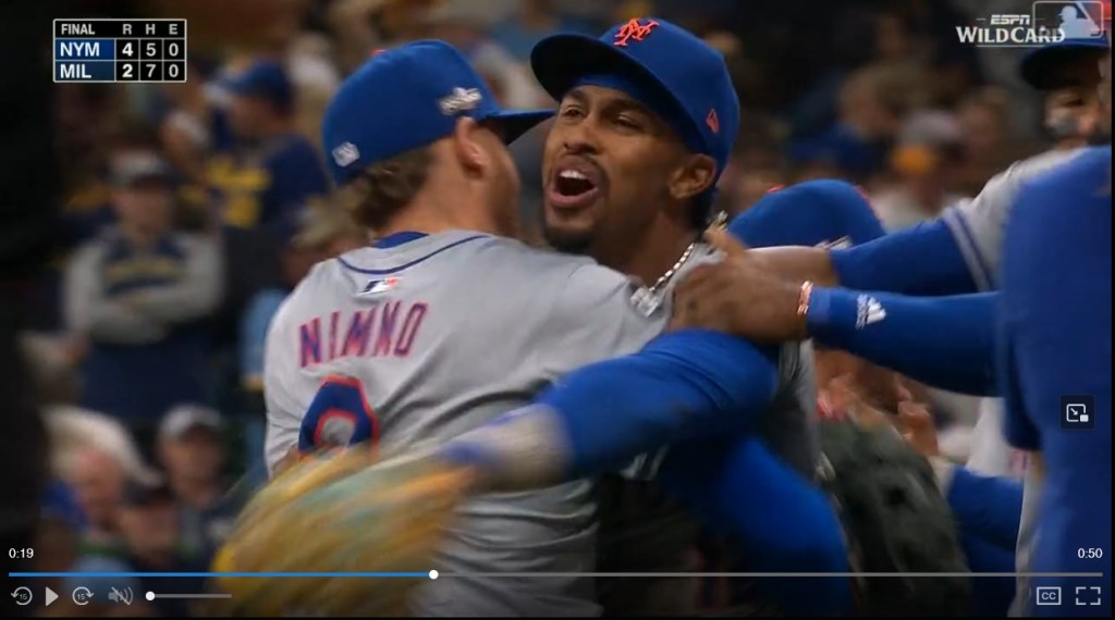 https://www.mlb.com/news/mets-win-nl-wild-card-series-2024?game_pk=775337 (Video: Brandon Nimmo)