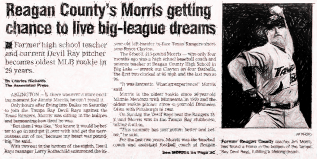1999 forderten ihn seine Spieler heraus – würden sie die Bezirksmeisterschaften gewinnen musste er versprechen, an einem Probetraining und Sichtung der Major Leagues teilzunehmen. Zu diesem Zeitpunkt war Jim Morris schon 34 Jahre alt und er dachte, dies wäre ein einfach zu haltendes Versprechen.