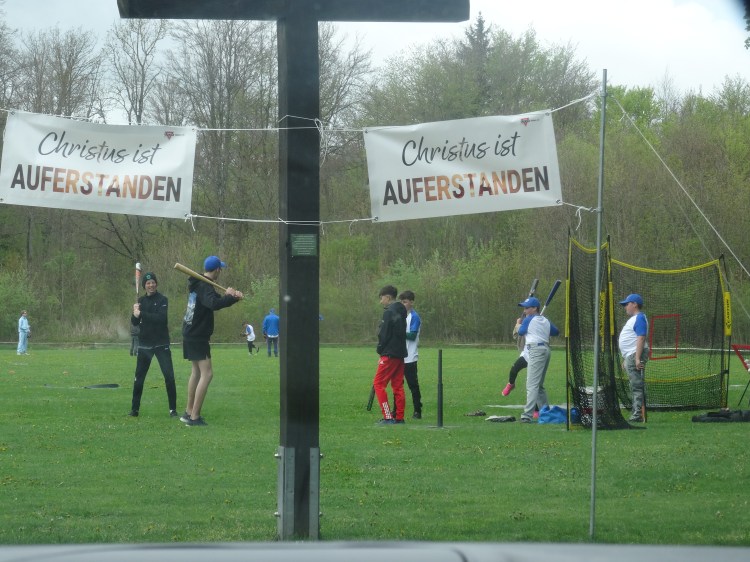 Wir sind dankbar, dass Jesus uns auch für dieses Event trockene Stunden schenkte und wir ohne Verletzungen mit den Teilnehmern T-Ball spielen durften. Wer ab dem Alter von 4 Jahren Interesse hat, T-Ball/ Baseball zu spielen hat dazu jetzt jeden Freitag ab 15 Uhr die Möglichkeit auf dem Etzenberg. Das erste Mal gleich am 02. Mai 2025. Die T-Baller können dann nach der BibleTime um 16 Uhr nach Hause gehen.