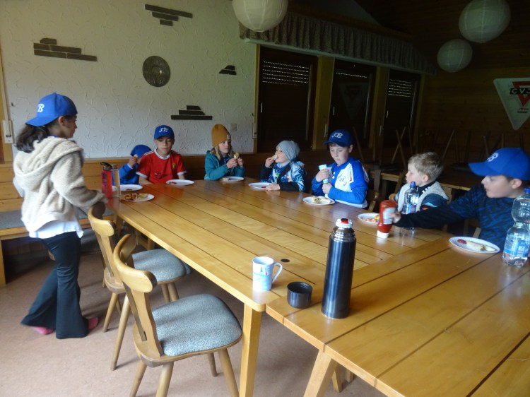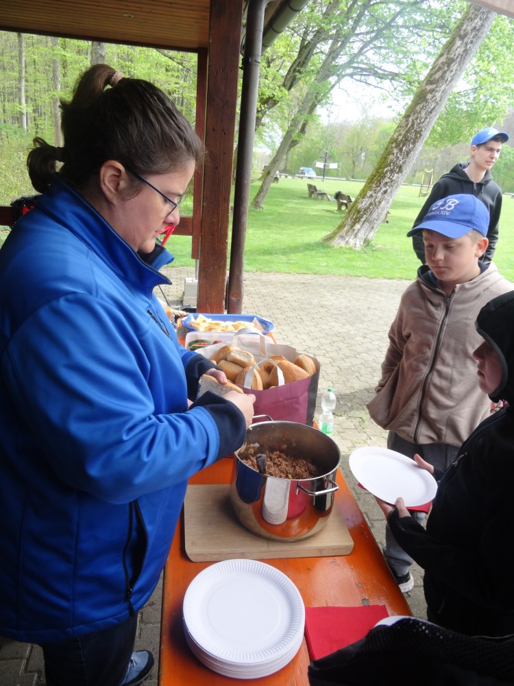 Vor dem Lunch mit „Pigs in a blanket“ sprechen wir mit den Teilnehmern darüber, dass nicht der Osterhase der Grund für Ostern ist, sondern die Auferstehung unseres Herrn Jesus. Dass Baseball immer auch mit „Fast Food“ in Verbindung gebracht wird zeigte sich daran, dass nach der BibleTime in kurzer Zeit alle „Pigs in a blanket“ ihren Schlafplatz im Magen der hungrigen Teilnehmer gefunden hatte.