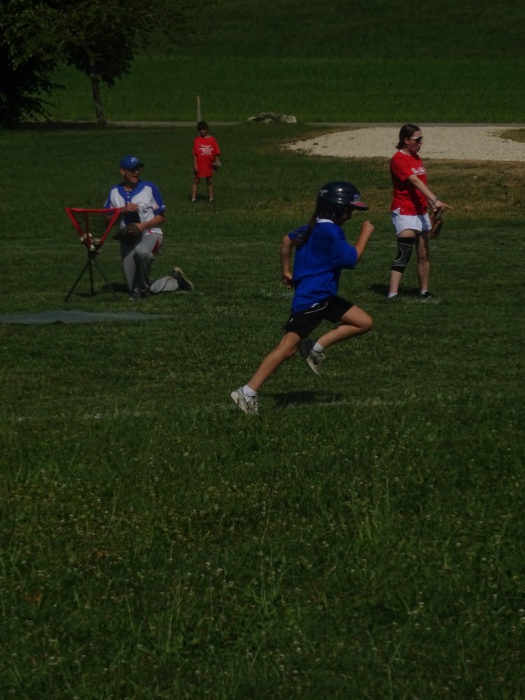 Danach entwickelte sich ein munteres Spiel zwischen den Blue Knights und den Red Birds. Wie für den Unabhängigkeitstag gemacht, gab es ein Feuerwerk von Doubles (weite Schläge, die über die Spielfeldgrenze rollen) und Home Runs (weite Schläge, die den Spieler direkt einen Punkt erzielen lassen). Das Ergebnis war zweitrangig, Spaß hatten alle.